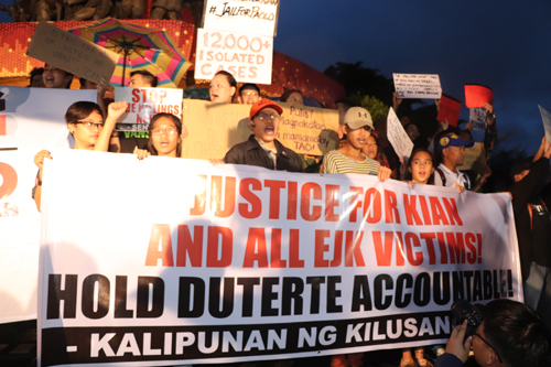 高校生殺害に抗議するデモ参加者=21日午後6時ごろ、首都圏ケソン市で遠藤美波撮影