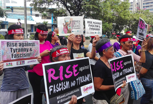 女性に対する暴力撤廃の国際デーの25日、首都圏各地では女性の人権に関するイベントが行われた。女性政党ガブリエラや先住民団体は首都圏パシッグ市の教育省...