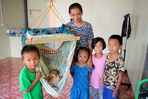 仮設住宅に引っ越してきたばかりのアンブアイさん一家=15日午後2時ごろ、ミンダナオ地方マラウィ市サゴンソンガンで冨田すみれ子撮影