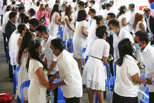 バレンタインの今月14日にケソン市が無料で合同結婚式を開催。200組のカップルが防疫措置を守りながら参加し愛を誓った。
