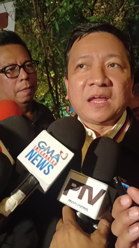 記者団の質問に答える国家安全保障会議のマラヤ事務局長補=28日、首都圏タギッグ市BGCで竹下友章撮影