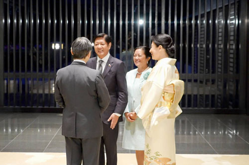 天皇皇后両陛下と言葉を交わすマルコス大統領夫妻=18日、皇居(大統領報道室が公開)