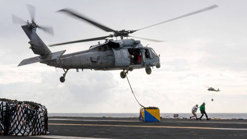 空母の飛行甲板上で訓練を行う艦載ヘリ=米海軍が公開