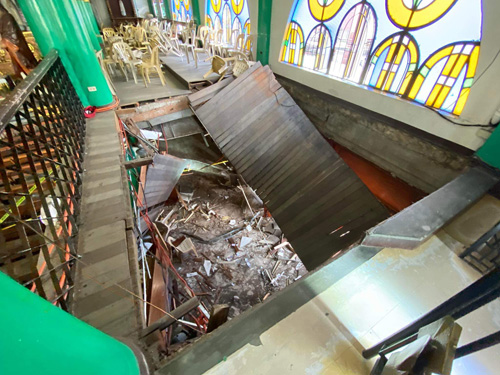 2階の床が崩落した聖ペテロ使徒教区教会=13日、ブラカン州サンホセデルモンテ市(同市広報室提供)