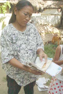 慰霊所の管理人を名乗る女性が現れた。バランガイ職員を務めるエルリンダ・アマットさん(50)は父親から引き継いだ二代目だという。
