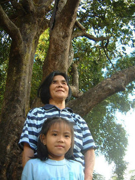 「この木は父が植えました。苗木は日本から父が持ち込んだか、日本人の知り合いに分けてもらったのでしょう。樹齢は八十年ぐらいで毎年甘い実をつけます。小さいころはビワやミカンも植わっていましたが、今は柿の木だけになりました」。バギオ市在住の日系二世、大久保バージニアさん(68)は幹に手のひらをあてながら柿と父の話を始めた。