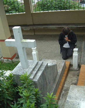 今、父母の墓は戦前からあるバギオ日本人墓地の一角にひっそり並んでいる。自宅の庭に植わっていたというツツジに囲まれた父の墓碑には「妻と六人の子供から愛する父へ」。母の墓碑には戦争中に亡くなった兄弟四人の名前、そして「寺岡家の生存者から愛する母と兄弟へ」と刻まれている。