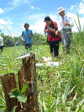 「お父さん、お母さん。私を生んでくれてありがとう。清子ちゃん、盛正。生きている時に会いたかったよ・・」。二〇〇二年八月、「ダバオ慰霊と交流の旅」に参加した山田春子さん(68)=沖縄県具志川市=が、朽ちかけたヤシの切り株に語りかけた。左手には古ぼけた一枚の家族写真。切り株に挟み込まれた日本製タバコの煙が、雑草生い茂る野の風にゆらぎながら青空へ消えていく。