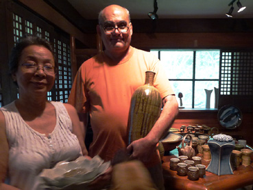 フィリピンに引っ越し、陶芸を学んでいたテシーさんと、個展で知り合い1978年に結婚。96年以降は日本に何度も足を運んで、窯元をめぐり、道川省三や寺島裕二ら多くの著名陶芸家の友人ができた。
