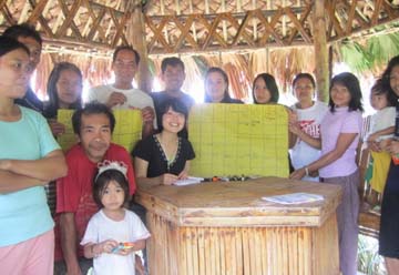 パイナップル農家の季節ごとの家計を知るために行ったワークショップで。机に向かって座っているのが林さん=林さん提供