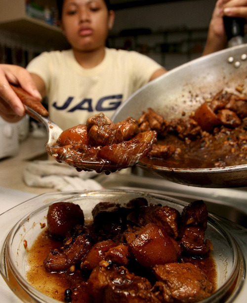 首都圏の家庭でメイドが作った豚肉たっぷりのアドボ(EPA=時事)