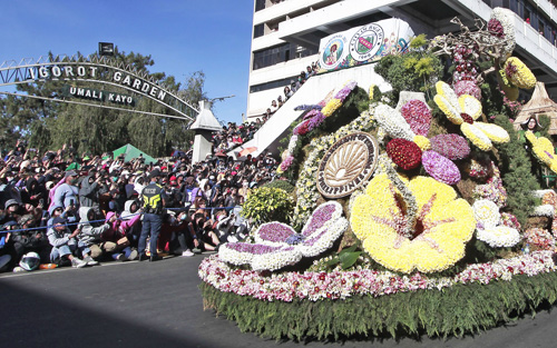 バギオ花祭りのグランドパレードで1等賞を獲得したTIEZAの山車=2月26日、アルテミオ・ドゥムラオ氏撮影