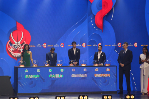 FIBAバスケットボールワールドカップ2023の組み合わせ抽選会の様子=29日、首都圏ケソン市で沼田康平が撮影