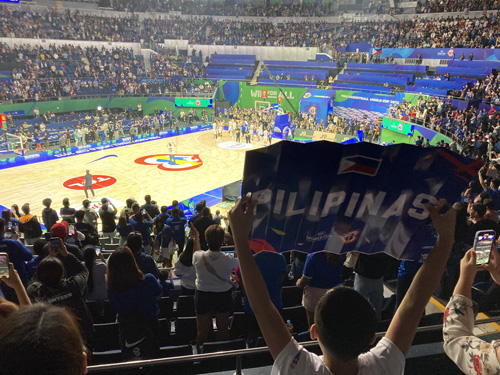 比日インドネシア3カ国で共催されている国際バスケットボール連盟(FIBA)ワールドカップ2023大会の順位決定戦に臨んだフィリピン代表「ギラス・ピリ...