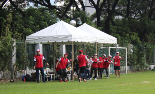 試合を終始、楽しんでいたアジパンダズの選手ら=1日、首都圏タギッグ市で沼田康平が撮影