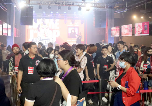 事前予約の無料チケットはすぐに完売し、数百人のファンで埋まった。歌詞太郎さんのトレードマーク「狐の面」に似せた手作りの面を首に下げ、ペンライトを振るコアなファンもいて、日本語の歌詞を一緒に口ずさむなど、初公演とは思えない一体感が会場を包んだ。