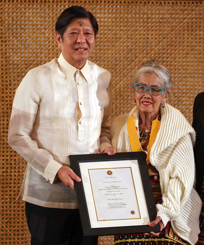 ルソン地方北部カリンガ州ブスカラン村の伝統タトゥー彫師として国内外で名を馳せるワン・オドゥさん(106)が14日、先住民の伝統と慣習の保護における貢...