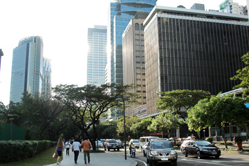 近代的なオフィスビルが立ち並ぶパセデロハス通り