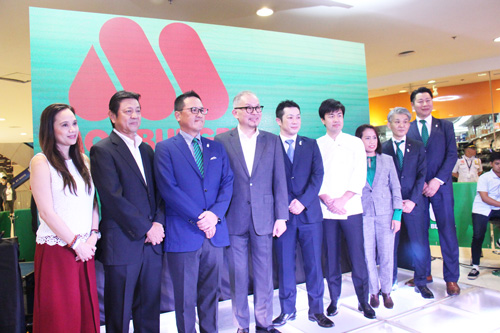 モスバーガーフィリピン荒木正英代表取締役社長(左から2人目)とトウキョウコーヒーホールディングスヒューバート・ヤング代表取締役社長(左から4人目)ら。