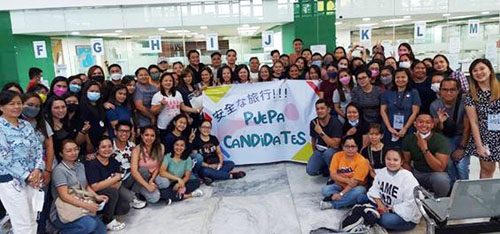 日比経済連携協定に基づき15日までに渡日した第14期の比人介護福祉士候補者らの一部=日本大使館提供写真