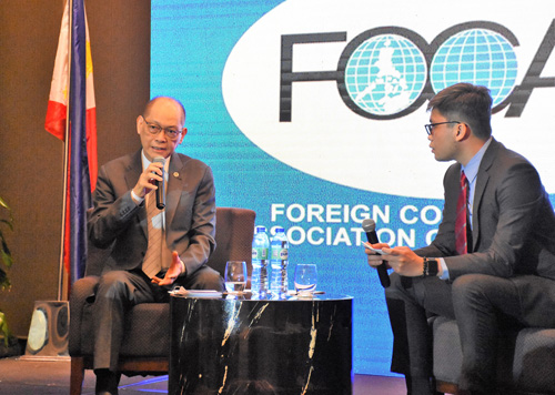 記者団の質問に答えるジョクノ財務相=20日午前9時半ごろ、首都圏マカティ市ダイヤモンドレジデンスで竹下友章撮影