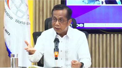 会見するバリサカン長官=9日、首都圏ケソン市