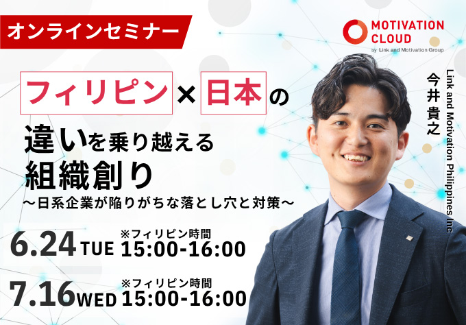 企業変革コンサルティングを展開している株式会社リンクアンドモチベーション(本社=東京都中央区)は今月24日火曜日および来月16日水曜日に、フィリピンに...