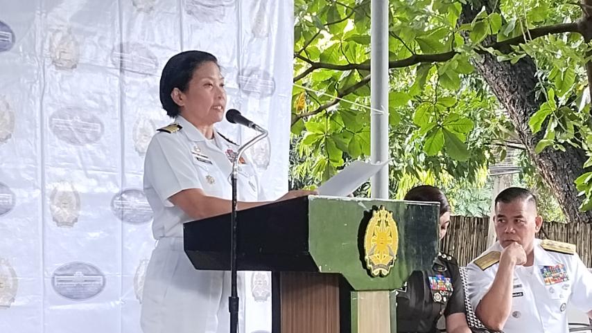 Quezon City -- Philippine Navy spokesperson Capt. Marisa Arlene Martinez answers questions from the media during the AFP press briefing in Camp Aguinaldo last week. File photo from last week's (Aug 26) AFP Press Briefing taken by Robina Asido/DMS