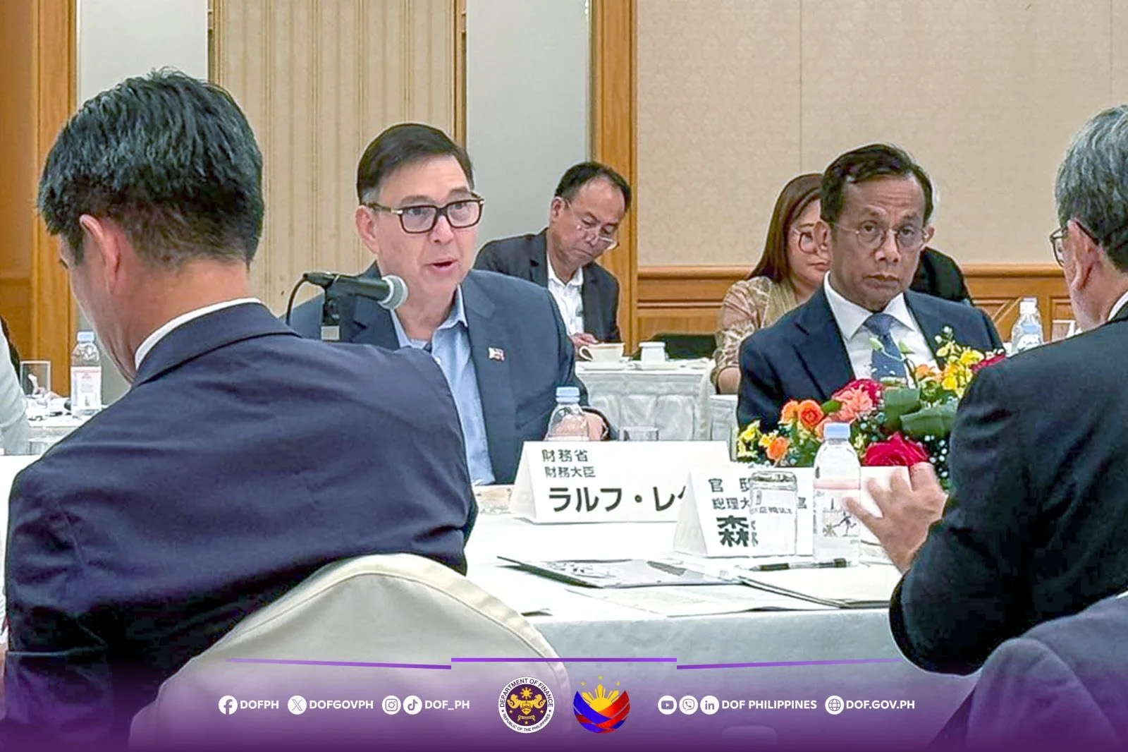 Finance Secretary Ralph Recto (left) and Economy, Planning and Development Secretary Arsenio Balisacan meet Japanese government officials in Osaka on Friday. (DOF Information Management Service)