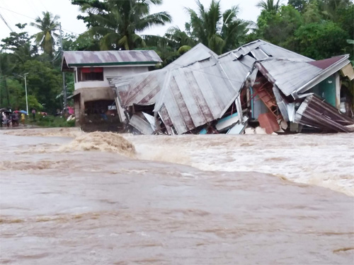 洪水で倒壊した家屋。西ミサミス州クラリン町=西ミサミス州警察提供