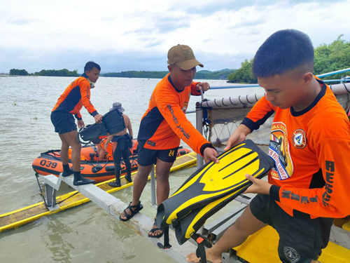 転覆した小型船の乗客を捜索するPCG隊員=PCG提供