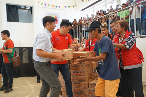10日にカガヤン州の被災者らに救援物資を手渡すマルコス大統領=社会福祉開発省カガヤンバレー州事務所提供