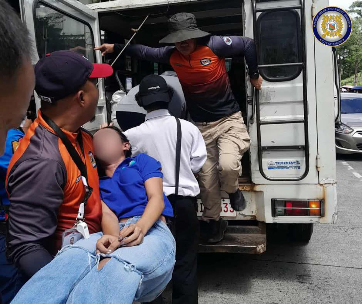 搬送される急患=9日、バギオ市(バギオ市公報課より)