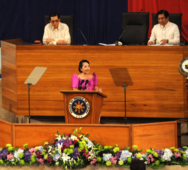 施政方針演説で任期延長を否定したアロヨ大統領=2009年7月