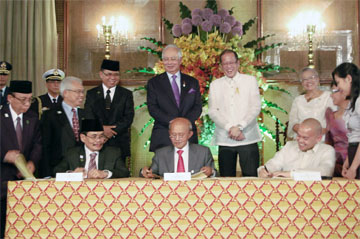 1997年から和平交渉を続けてきたフィリピン政府と反政府武装勢力モロ・イスラム解放戦線(MILF)は15日午後、マラカニアン宮殿で、和平の枠組みに関...