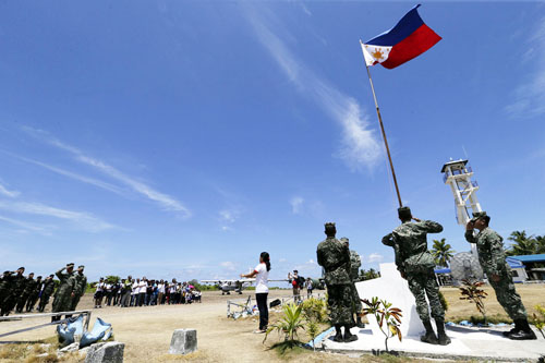 パグアサ島で行われた国旗掲揚式=代表撮影
