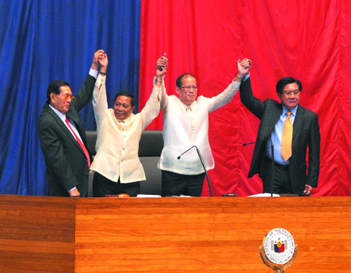 政権のキャッチフレーズは「まっすぐな道」「汚職なければ貧困なし」だった。アロヨ前大統領を略奪容疑で逮捕し、コロナ最高裁長官を弾劾、ビナイ副大統領一族の不正蓄財を追及、優先開発補助金の不正流用で、上院議員を3人を起訴した。