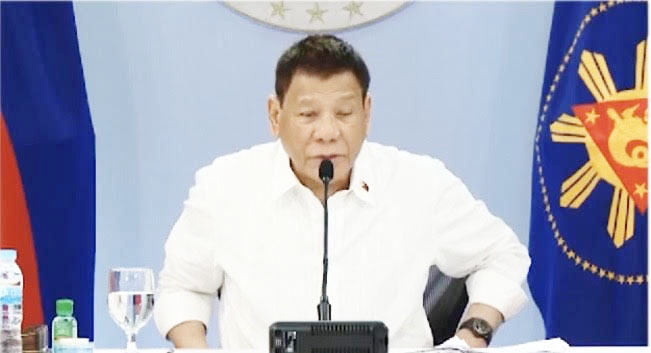 27日、オンライン首脳会談をするドゥテルテ大統領と習近平・中国国家主席(比国営テレビRTVの画面から)