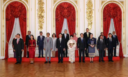 日・ASEAN特別サミットで記念撮影を行う各国首脳=首相官邸が公開