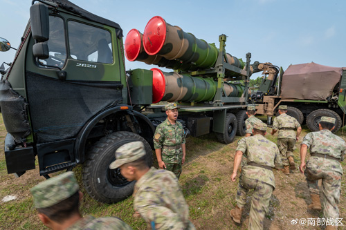 南シナ海沿岸部で迎撃訓練を開始した人民解放軍空軍地上誘導旅団=7日に中国軍南部戦区が公開