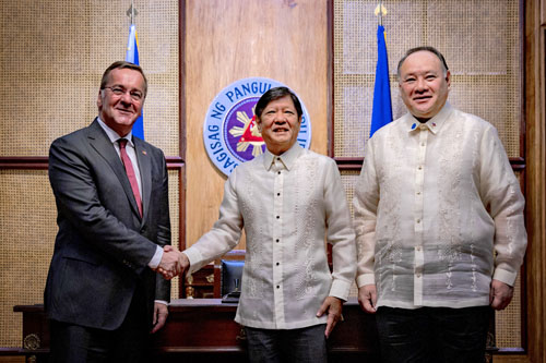 ドイツのピストリウス国防相は3~5日にかけフィリピンを訪問し、テオドロ国防相、マルコス大統領らと相次いで会談した。ドイツ国防相の比訪問は初。4日には比独国防相名の共同声明を発表し、包括的な防衛協力協定を締結することで一致したと発表した。さらに、2カ国間での防衛装備増強協力と「共同プロジェクト」についても可能性を追求する意思を表明した。記者会見で両相は、防衛協定を年内に締結する見通しだと語った。