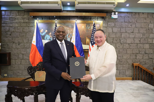 フィリピンを訪問したオースティン米国防長官が18日午前、首都圏ケソン市の国防省本部でテオドロ国防相と会談を行った。両者は比米間の軍事情報を安全に共有するための「軍事情報包括保護協定(GSOMIA、ジーソミア)」を締結した。国防省が18日にプレスリリースを発表し、会談内容を明らかにした。