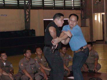 パサイ市で起きた人質男児殺害事件を受け、マカティ署は八日、専門家を招きスワットチーム二十四人を対象に人質救出訓練を開始した=写真。訓練を統括するデリ...