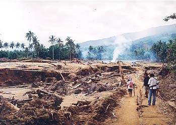 農地を埋めた泥と流木=ゼネラルナカール町で写す