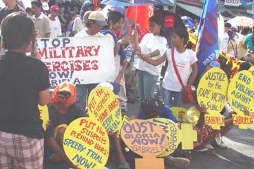 比女性団体の抗議集会 オロンガポ市検察事務所前で23日写す