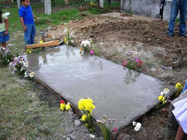 ホンジュラスの共同墓地。埋葬はあまり深く掘らず、上面にはコンクリートを流している。