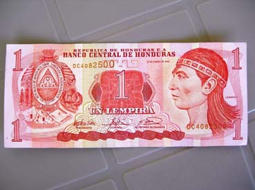 ホンジュラスの最少額紙幣1レンピーラ(約2.4ペソ)