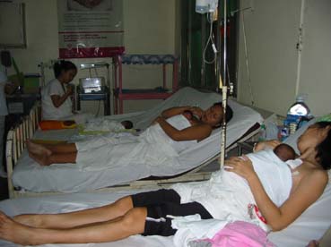 ベッドの上で「カンガルーケア」中の母親たち=国立ホセ・ファベリア母子病院