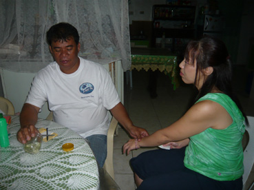 治療中の信仰治療師デイビッドさん(左)