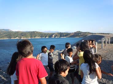 サンロケダムを見学するマニラ日本人学校の5年生=サンロケパワー社提供